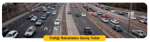 • Özellikle büyük kentlerde, kent içi trafiğin tıkanmasını önlemek için geniş yollar ve köprülü kavşaklar yapılmalıdır.